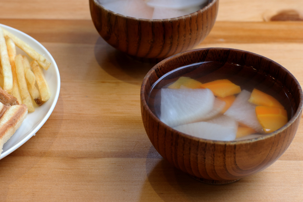 當天的自製湯品為紅蘿蔔大根湯,是我喜歡的原味湯頭,帶著大根與紅羅蔔熬煮後的鮮甜,這裡的配菜與湯品,時常是看當日早上店主在市場採買了什麼新鮮好料而做變化,若是每天來,也能嚐到不同的驚喜口味。