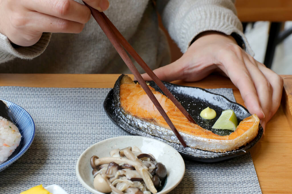 ▼鹽漬鮭魚$220/ 飯糰皆附季節沙拉、漬物、家常菜2種