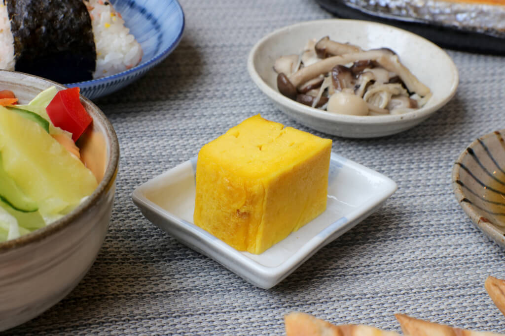 金黃色澤的玉子燒,是軟嫩口感,而簡單炒香滑順的香菇,帶著適中的香氣,一旁台式醬油簡單清蒸的的豆腐也很好吃,淡淡豆腐香氣,是稍微入味的鹹香,而生菜沙拉上是放了切丁的甜椒,淋上少量的千島醬,就很好吃,整體來說,日和 . まいにち 的配菜皆以清爽口味呈現,簡單的調味,吃著格外沒有負擔。