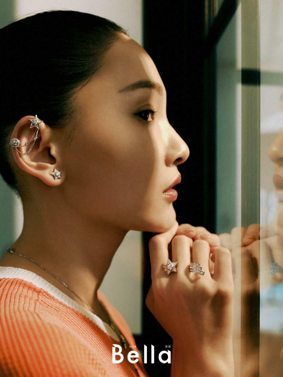 而「反差感」也反映在珠寶的穿戴風格上,比起穿戴全套的珠寶出門,小美在搭配上非常有自己的原則:「我每次配戴會挑一個 珠寶作為重點,可能是以耳環或項鍊為主,在適度留白之餘,再加入其他珠寶做層次的搭配。」拍攝這天,小美以獨特個人風格重新混搭香奈兒 1932 高級珠寶系列,不論是在夜空中獨自閃耀的星星、或是一閃即逝的彗星,在小美與眾不同的詮釋下,散發獨一無二的耀眼光芒。就像小美總是帶給我們多變印象,在冷豔氣質中,依舊流露出豐沛情感,時而酷帥、時而風趣,有著多重的魅力。