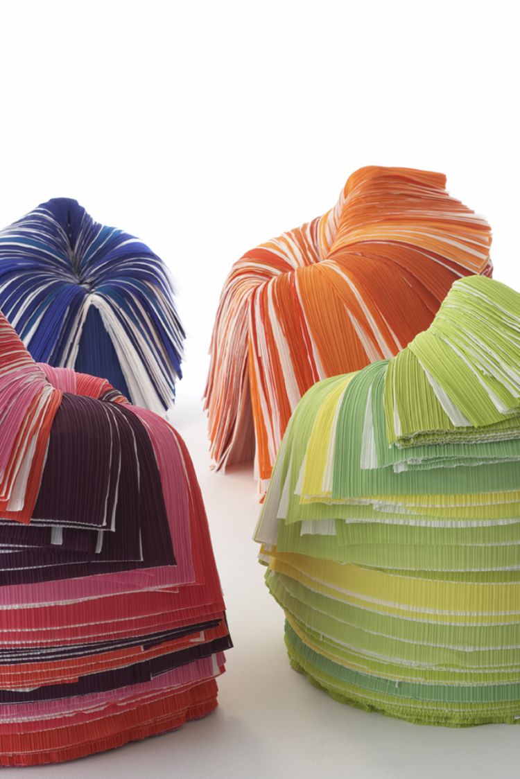 椅子,成為佐藤大設計生涯裡,最具代表性的經典作品之一。好比 2008 年,攜手三宅一生打造的 Cabbage Chair,利用製作服裝時產生的壓皺紙材料,一層層如「剝開高麗菜」般展開形成椅子。完全不需螺絲或黏合劑,自然成型,強調永續、減廢、設計與工藝的結合,推出後,被現代藝術博物館(Museum of Modern Art,簡稱:MoMA)收藏,成為 Nendo 成功的代表作之一。