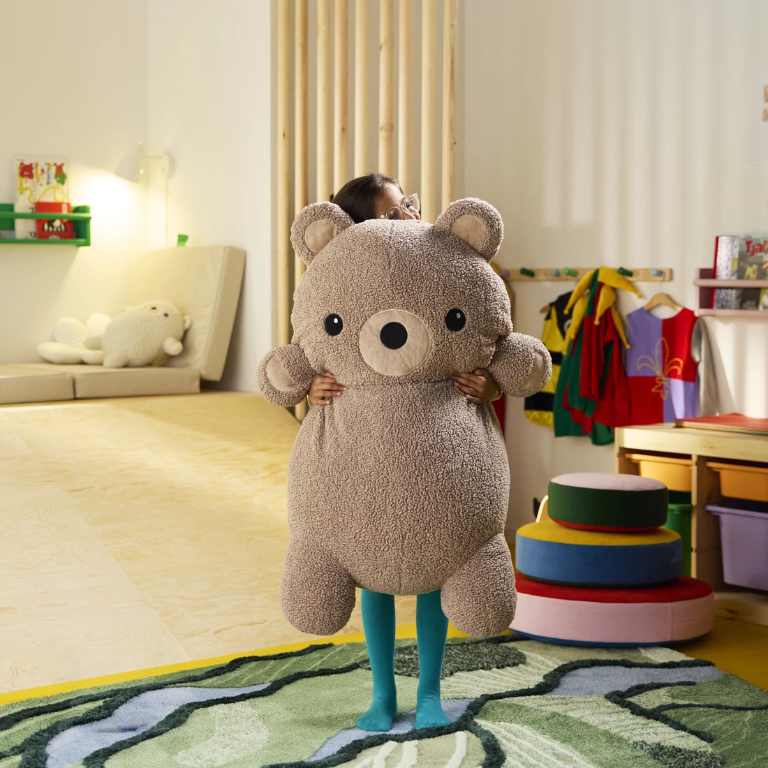 100公分的大尺寸「熊造型填充玩具」,一抱就不想放手。毛茸茸觸感柔軟厚實,給人滿滿安全感,不只是玩偶,更像是陪伴成長的存在。放在床邊、地毯上或閱讀角,都能成為空間裡最溫暖的角色。這種大型填充玩具,往往會成為孩子記憶中一直都在的那一隻(NTD1,499)!