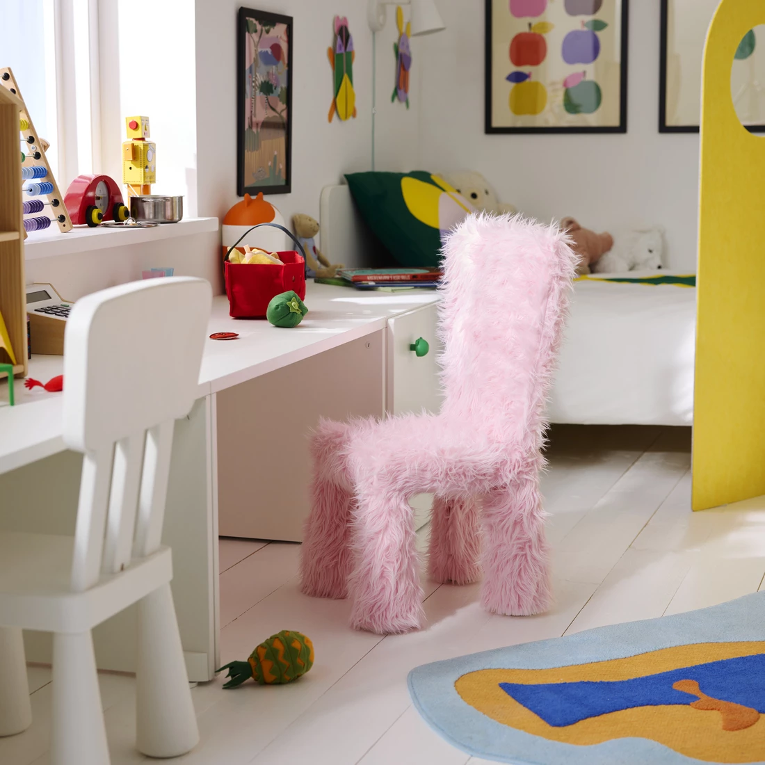 「兒童椅椅套」替經典MAMMUT椅換上一件毛茸茸的新衣。柔軟觸感讓椅子瞬間變成可以坐、可以抱的「毛絨夥伴」,不只提升舒適度,也增加孩子對座位的黏著度。粉紅色調溫柔不刺眼,讓原本熟悉的家具有了全新表情,是最簡單卻最有感的升級方式(NTD499)。