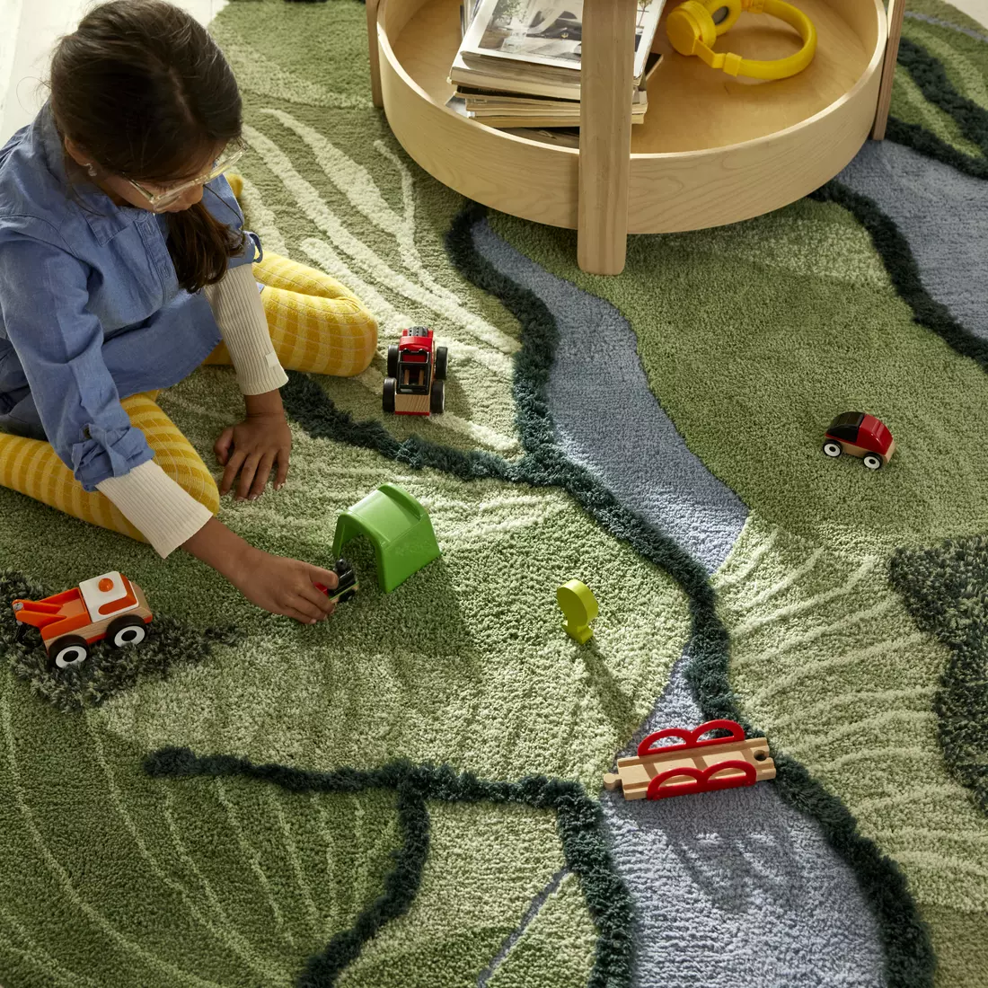 鋪上「長毛地毯」,地板立刻變成森林樂園。翠綠色調搭配高低錯落的毛面,勾勒出草地、溪流與小徑的立體感,孩子彷彿走進自然場景,在家就能展開冒險。柔軟觸感適合坐、躺、翻滾,是結合視覺、觸覺與想像力的空間核心(NTD3,999)。