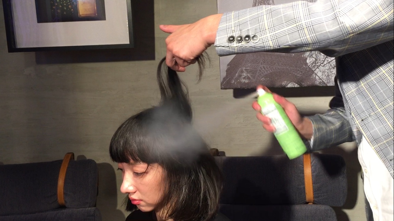 乾洗髮主要會使用在頭皮,因此像是分線的區域要特別加強,並把頭髮一層層的拉起,才會真正噴到頭皮。