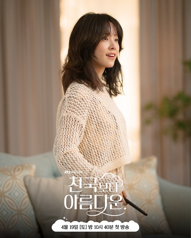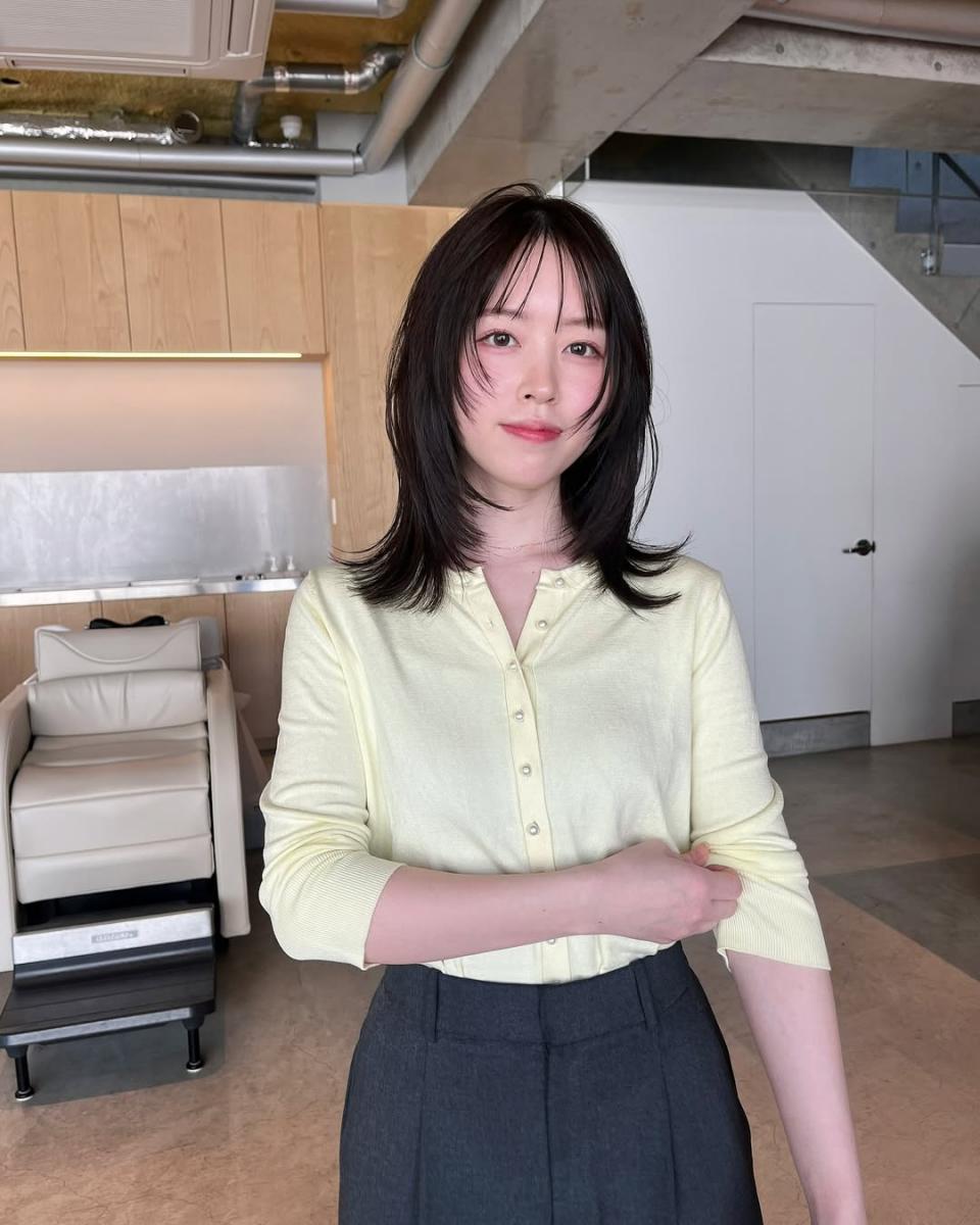 飾演誤入天堂的神秘女孩「小絮」的韓志旼,雖然已邁入42歲輕熟齡階段,但一身米色針織上衣搭配短裙的俏麗風格,以及巧妙修飾臉型、隱藏年紀的層次剪髮型,皆讓她擁有恰似20歲的青春外型。而韓志旼在鎖骨剪髮型的呈現上,特別搭配髮尾捲度,提升層次剪裁的變化性。八字瀏海與層次弧度銜接,上短下長的輪廓更讓整體造型俏麗不失個性。