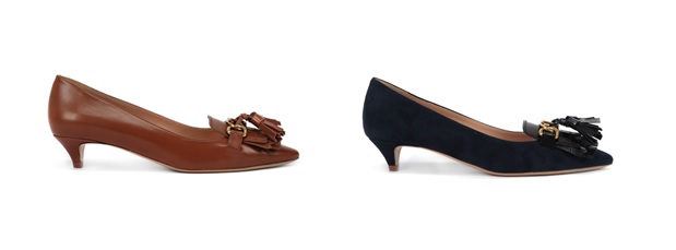 延續豆豆鞋的設計,金屬釦環與皮革流蘇裝飾,讓這款貓跟鞋多了復古及經典的韻味,低調演繹義大利女人的優雅品味。魔鬼藏在細節裡,在金屬飾釦的細節中可以發現小巧的T字型Logo,體現品牌對細節的用心。