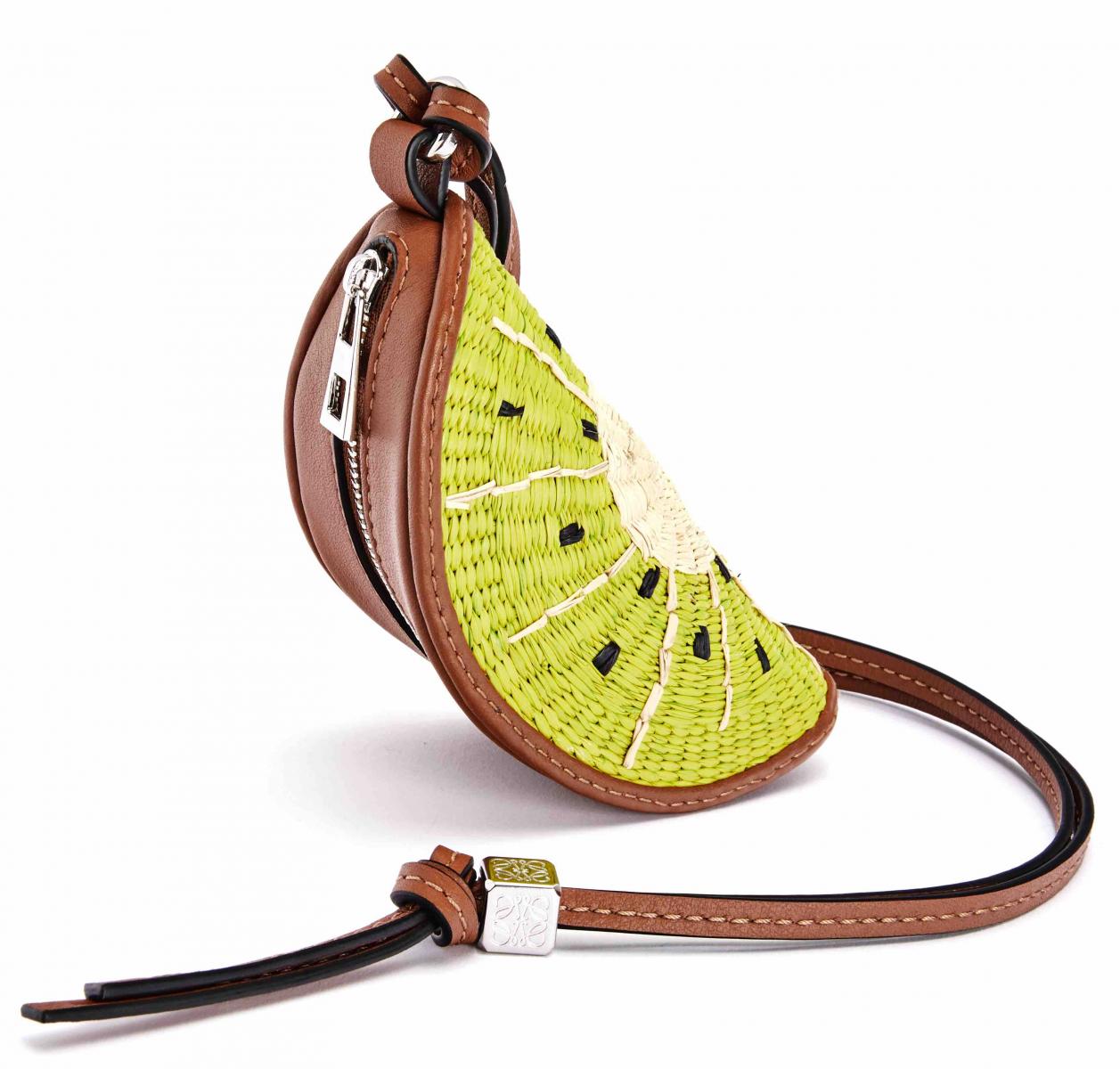 玩味奇異果造型零錢包,以編織伊拉卡棕櫚葉和小牛皮製成。採用在哥倫比亞種植、收成及曬乾的伊拉卡棕櫚葉,並由Corporación Oficio y Arte的女工匠進行編織,由於其手工製作的性質,每一款包的尺寸可能略有不同,讓你擁有史上最獨一無二的夢幻包款。