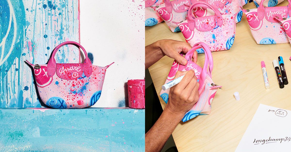 這次聯名合作的精采亮點是,全球“限量200只的「Le Pliage」迷你包款”,採用再生聚酯帆布製成,上面印有粉色和藍色的Mr. A塗鴉」,並再由André親自彩繪設計,每只包款皆各自擁有編號,世界上的獨一無二,絕對是你可以每天攜帶的原創時尚藝術品!