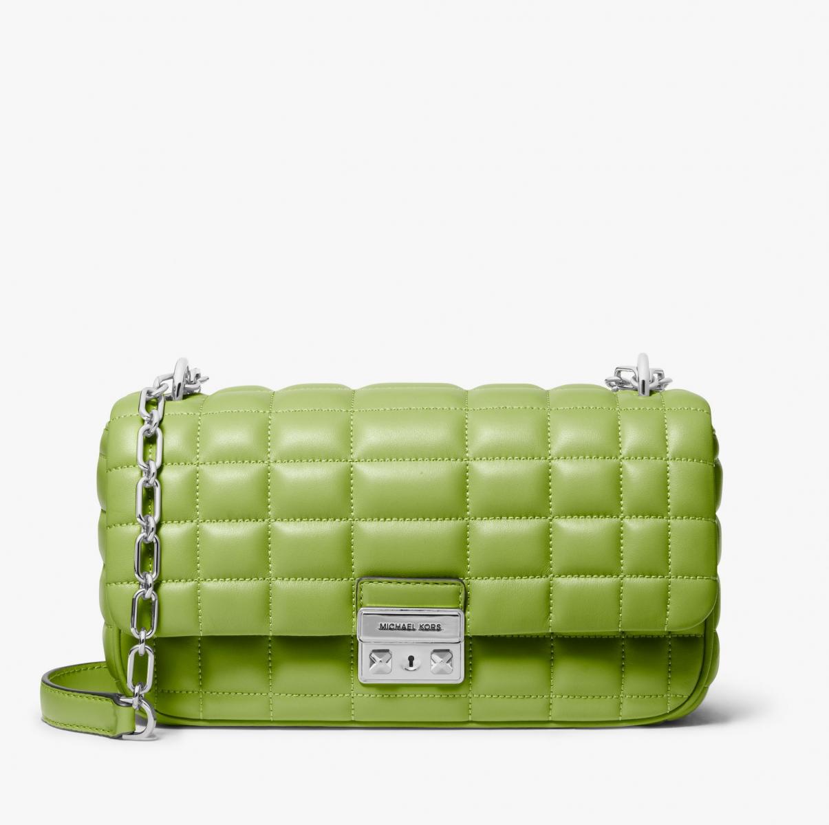 Michael Kors 是美國最具代表性的品牌,這款包袋以方正的格紋絎縫增添其層次,同時再搭配率性的鍊帶,讓包款多了幾分個性。(商品售價:NTD19,000)