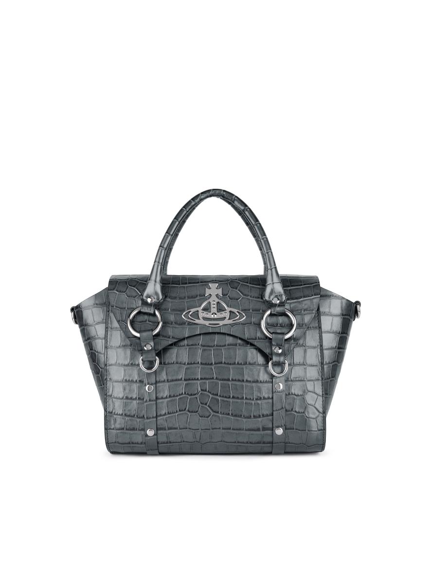 以叛逆的設計風格在時尚圈站穩陣腳的 Vivienne Westwood,品牌在近年不只珍珠項鍊很搶手,別具風格的包款也成為許多年輕女孩的最愛,例如這款提包以鱷魚壓紋搭配金屬光澤呈現,再加上金屬扣環的點綴,展現其搖滾氣息。(NTD39,700)