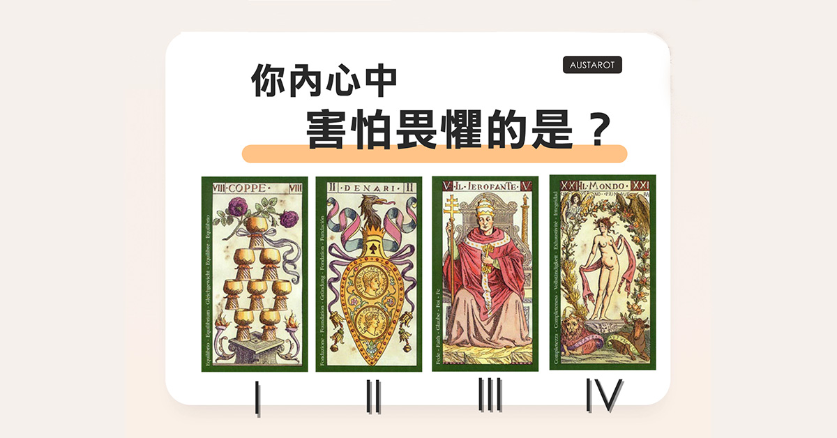 選擇到這組牌的朋友,似乎對於面臨選擇的情況非常恐懼。這牌多半代表的是選擇與游移,你們每每在面臨選擇時就會看起來相當困擾,你們不是作不出選擇,而是你們的內心充滿小劇場,會在每次面臨選擇時上演一齣齣的戲碼。你們習慣將選擇的結果在腦海中演練上一次,只要一想,腦袋就停不下來了!
