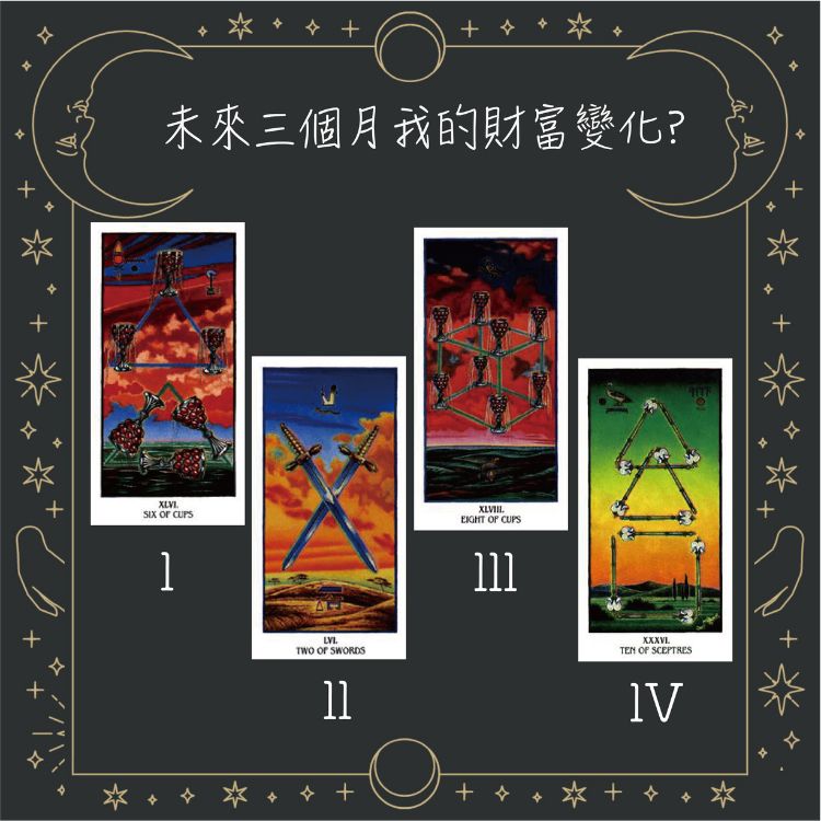 在接下來的三個月裡你的財富狀況會經歷一些重要的變化,將根據你所抽出的四張塔羅牌,分析每一張牌所傳遞的訊息,趕快一起來看看未來三個月的財富變化?