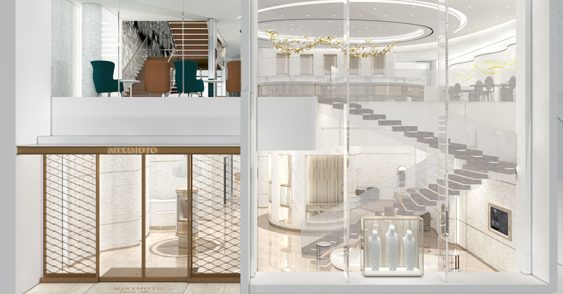 在歷經2015到2017兩年時間的重新整頓後, MIKIMOTO銀座四丁目本店於日前盛大開幕,其14層樓的建築,包含了六層珠寶沙龍以及一層的展覽藝廊。無論外觀還是內部裝潢、陳列或規劃等,處處充滿細節,並且也裝飾許多珍稀藝品,讓全新的旗艦總店更添幾許藝文風采。尤其超過四萬片玻璃磚鋪鑲在旗艦店的外觀,不但自然融入城市景觀,當陽光灑下,奪目耀眼的奢華光芒更射放出強烈的存在感,這棟MIKIMOTO銀座四丁目本店,勢必將成為銀座的新地標。