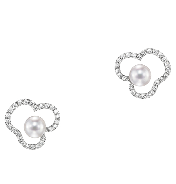 18K白金鑲鑽及阿古屋珍珠耳環,NTD 191,000