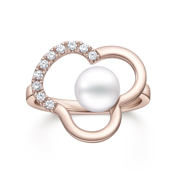 18K櫻花金鑲鑽及阿古屋珍珠戒指,NTD 121,000