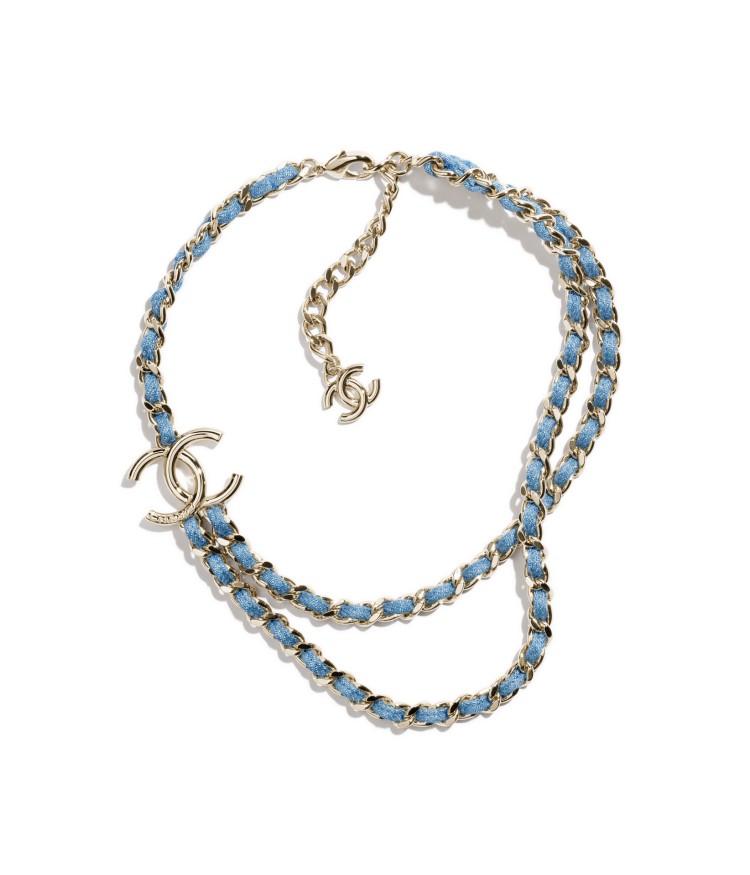 金屬與丹寧皮穿鍊雙C Logo層次項鍊