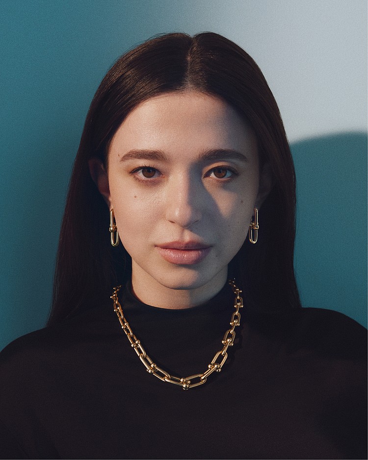 演員Greta Lee配戴鋪鑲鑽石與K金的HardWear系列,雙環相扣的耳環如同親情間緊密相連。她表示:「當家人的愛是無條件的,愛自己便成為必然。而愛的所在,即是力量之源。」詮釋了珠寶背後深厚的情感力量。