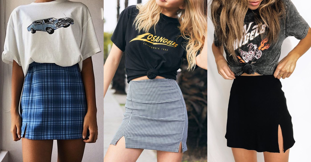 迷你裙是BM女孩們的「標配」之一,配上復古圖案短T,展現經典俏皮的風格,可以選擇紮進去或是綁個結變成短版上衣,小露腰身帶點微微性感。格紋裙帶點英倫風,仿舊的復古T,帶給你70年代的搖滾氛圍,若是配上碎花短裙、腳踩馬汀,則可以給人甜美又帥氣的感覺!