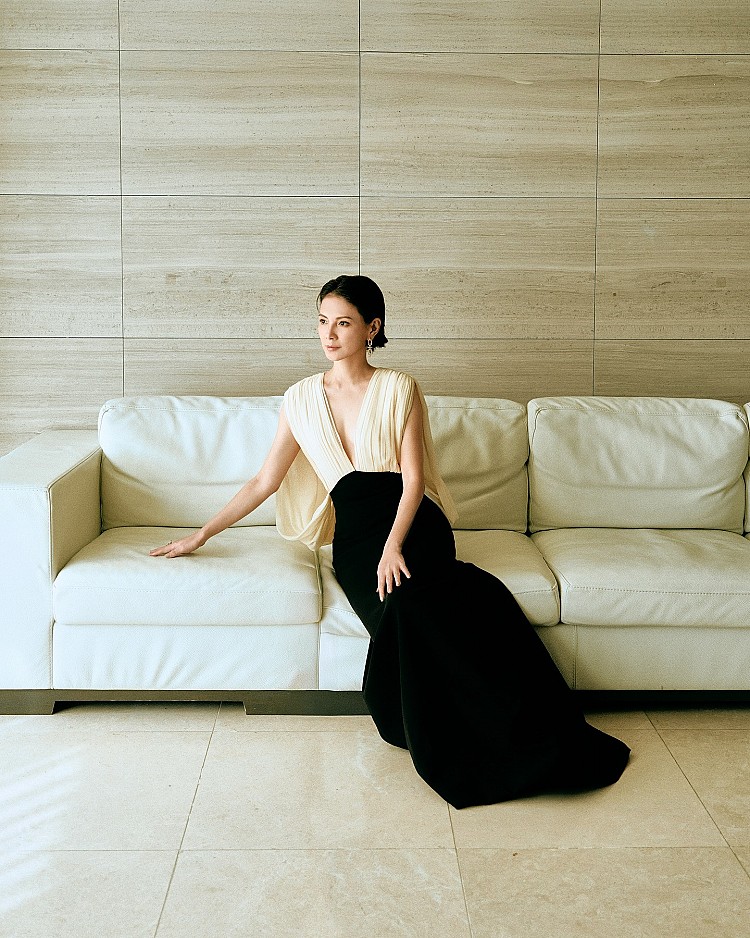 李心潔在釜山國際電影節紅毯上,以一襲Celine黑白拼接長禮服驚豔全場。白色上身採用飄逸垂墜布料,搭配深V剪裁展現柔美肩頸線條,而下半身的黑色長裙則以修身剪裁強調高挑比例,營造俐落與高雅兼具的輪廓。