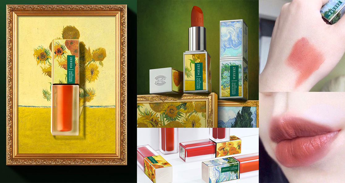 別以為小資美妝只會在包裝上搞噱頭,《ZEESEA》的每款聯名,都是富有藝術意涵的呢!《ZEESEA》攜手大英博物館推出梵谷聯名彩妝,從經典畫作〈向日葵〉到〈麥田與絲柏樹〉,梵谷帶點迷幻的印象派風格披上方形唇膏管身,宛如油畫般的精緻立體手感,讓你補妝時都能散發優雅藝術氣息 ~ 除了外觀設計讓人著迷,滑順的唇膏質地,不僅不顯唇紋,搭配溫柔奶茶玫瑰色,一筆抹上氣質、氣色通通跟著來 ~ ( 一畫上就變高級臉! )