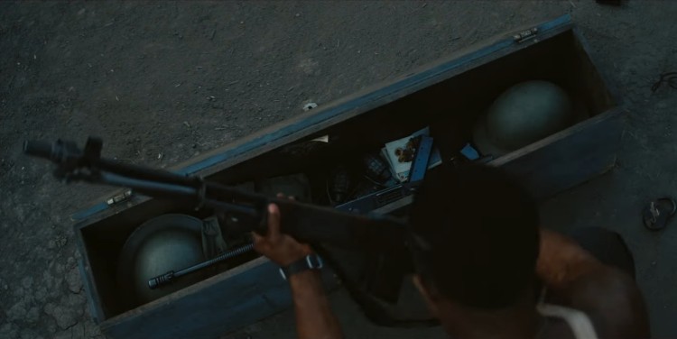 此外對於道具的考究也非常講究,尤其是片中有許多動作場景都會用到槍械,也都很符合時代背景跟角色設定,像是史家兄弟是軍人出身,除了常見的手槍之外,他們的常備武器還有20世紀初即到二戰時期都是服役主力的栓動式步槍。另外片尾史莫克找三K黨決戰時,武器箱裡就放著戰時放的頭盔,還可以看到當時已經被發平、但沒有普遍服役的半自動步槍,看起來蠻像溫徹斯特1907型,還有那配上鼓式彈匣火力強大的湯普森衝鋒槍,可說是當時美國黑幫的標配,上述提到艾爾卡彭的黑幫組織就有使用這種武器。
