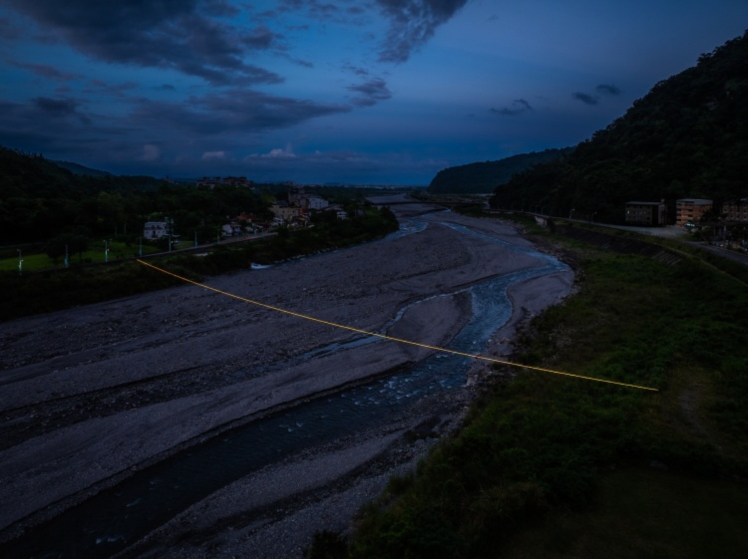 胡縉祥、郭彥宏、韓承燁共同打造的作品《光湧·界》,以「水」與「光」為元素,結合自然流動和數位光影,展現知本溫泉蘊藏的生命能量。作品利用橋梁作為載體,透過投影與雷射技術,創造出一扇「穿越感知」的時空之門,閃耀於橋柱間。光影變幻中,邀請觀者踏入介於自然與數位、現實與夢境之間的「界」—光象徵靈性與希望,湧代表生命與甦醒,界則是通往另一感官世界的隱喻。站在橋下,觀者彷彿被水氣與光粒包圍,身心共鳴,與自然展開一場深刻的對話。