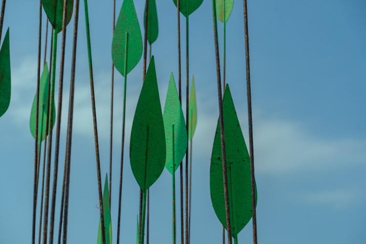 2025年共有19組藝術團隊參與創作,涵蓋國內外藝術家與藝術孵育計畫選出的新秀,從山、海、城三區展開對城市與自然的回應,其中包括徐瑞謙於「基隆塔」創作的大型裝置,顏色巧妙呼應地景,以多件不同向量的雕塑物件,以及此地的緯度,透過無機的媒材、造形與地理訊息的結合,在雕塑物與雕塑物之間組成一句關於這裡的地景詩。