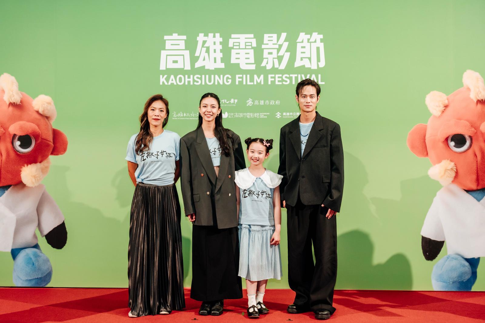 另一部開幕片《左撇子女孩》由導演鄒時擎率領童星葉子綺、馬士媛、夏騰宏亮相紅毯,9歲的葉子綺一出場萌翻全場。電影以少女視角描繪成長的焦慮與自我追尋,搭配柔光畫面與抒情節奏,成為港都開幕夜最溫柔的一抹色彩。主創團隊現場與觀眾互動,葉子綺以稚氣笑容說出「大家喜歡我的電影嗎?」全場掌聲不斷。鄒時擎表示,希望觀眾能從女孩成長的故事中,看見每個人面對未知時的勇氣。