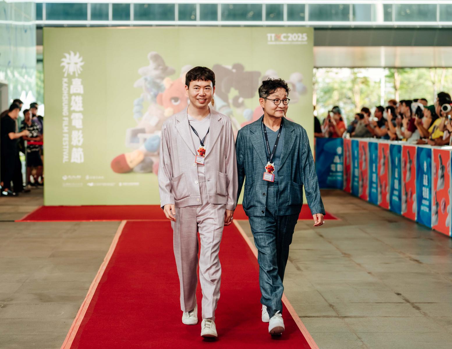 韓國導演金趙光壽與製片Dave Kim手牽手亮相紅毯,浪漫指數爆表。兩人與觀眾親切互動,談到創作靈感來自「瞬間的悸動與遺憾」。電影以細膩鏡頭描寫兩位陌生人在城市相遇的短暫情感,被譽為「最溫柔的韓系愛情電影」。現場粉絲高喊「撒浪嘿!」導演笑著回「我也愛你」,成為當晚最甜蜜瞬間。