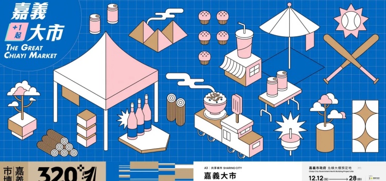 「嘉義大市」延續嘉義城市的生活日常,將 12/12 至 12/28 週三及週末化為最具嘉義特色的生活市集。策展由夥球擊操刀,以「城市縮影」為概念,集結地方品牌、手作職人、選物店到風格飲食,讓市民在散步之間即可感受嘉義在地文化的多樣性。