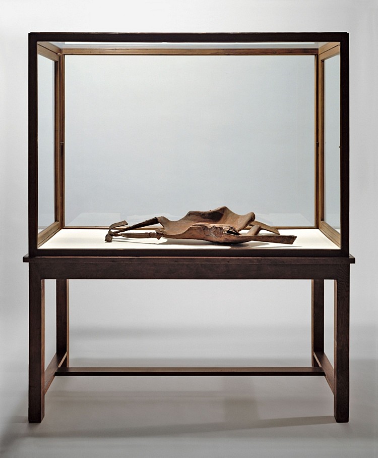 約瑟夫・波依斯(1921-1986),〈給20世紀細肢者的(兔型)背架〉,1972–1982 鑄鐵背架、展示櫃,背架15 × 94 × 45 公分,展示櫃183.5 × 155 × 64.5 公分。Courtesy of Joseph Beuys Estate -Galerie