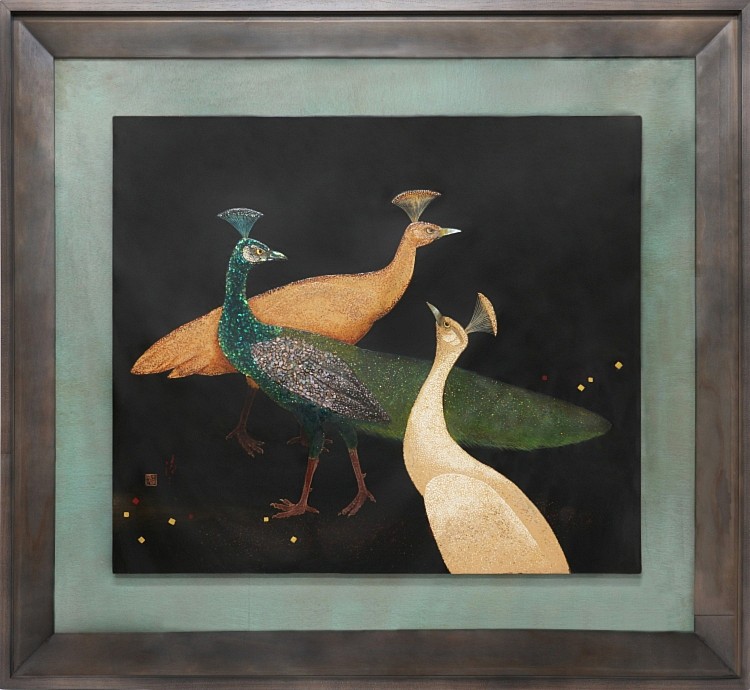 海地藝術家邁蘭德.康斯坦特(Myrlande Constant)以《La Sirène》重新詮釋巫毒旗幟藝術,從女性視角重構宗教與文化敘事,翻轉外界對海地藝術的既定印象。人間國寶王清霜《佇聆孔雀》透過細膩漆藝,捕捉孔雀姿態中的靜謐張力。