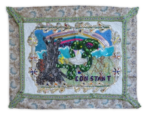 邁蘭德.康斯坦特,〈韋多〉(Hwèdo)2022,布面珠繡與亮片,含框 Framed 61 × 81 公分,© Myrlande Constant.Courtesy of the artist and Fort Gansevoort, New York。Source:臺中市立美術館