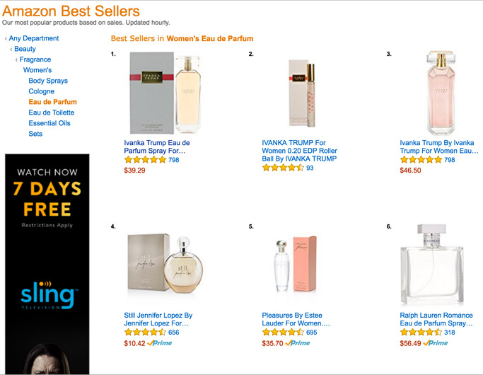 雖然這看似一個頗大的打擊,但其實Ivanka還有一個王牌武器:女性香水。 就算在鞋類等商品類別上的表現差強人意,但她的女香系列卻在這周末打敗了JLO和Estee Lauder,榮登Amazon網購最佳銷售第一名的寶座!