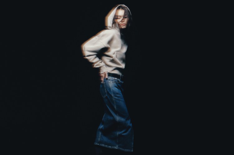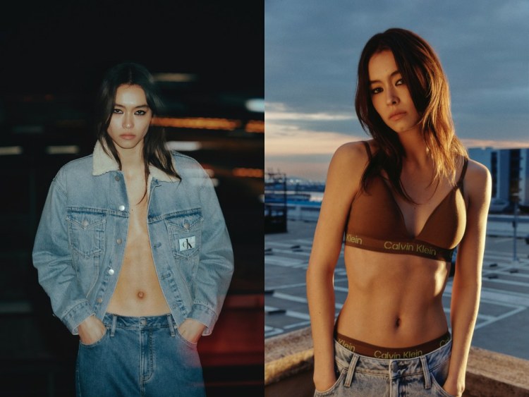在女性系列中,Calvin Klein 找來了上遍無數雜誌封面的日本混血女模 Maryel Uchida 來入鏡,在整體造型上,她畫上了極具個性的眼妝,再搭配上品牌大地色系的成套內衣,自帶超模身材的她把內著做了最率性的演繹,而在牛仔系列的休閒單品中,最讓人眼睛為之一亮的是 Calvin Klein 以俐落版型設計的鉛筆牛仔長裙,上身不管單穿內衣還是搭配連帽上衣,整體時髦度全都逼近滿分!