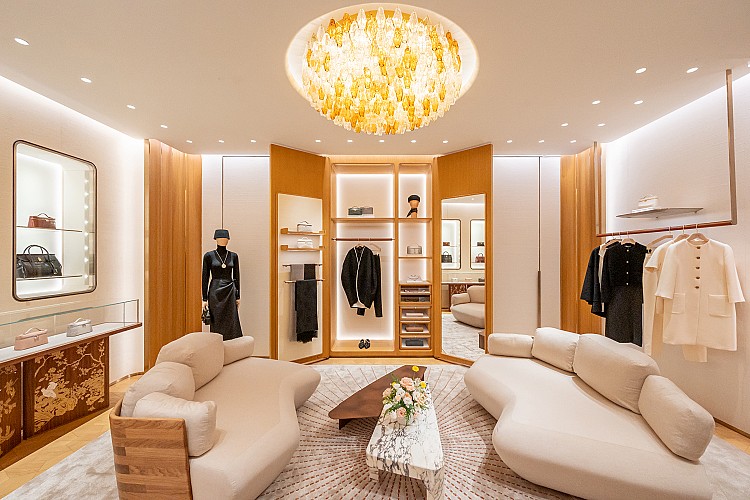 新店完整呈現女裝、男裝、皮件、鞋履、配飾與香氛等全系列商品,並首度引入成衣系列(Ready-to-Wear),打造完整的一站式精品體驗。店內室內設計延續義大利風格的空間語彙,採用天然大理石、胡桃木與馬賽克工藝構築出溫潤優雅的氛圍,特別設置 VIP 私人鑑賞空間,以靜謐氛圍結合高端服務,為貴賓提供專屬尊榮體驗。