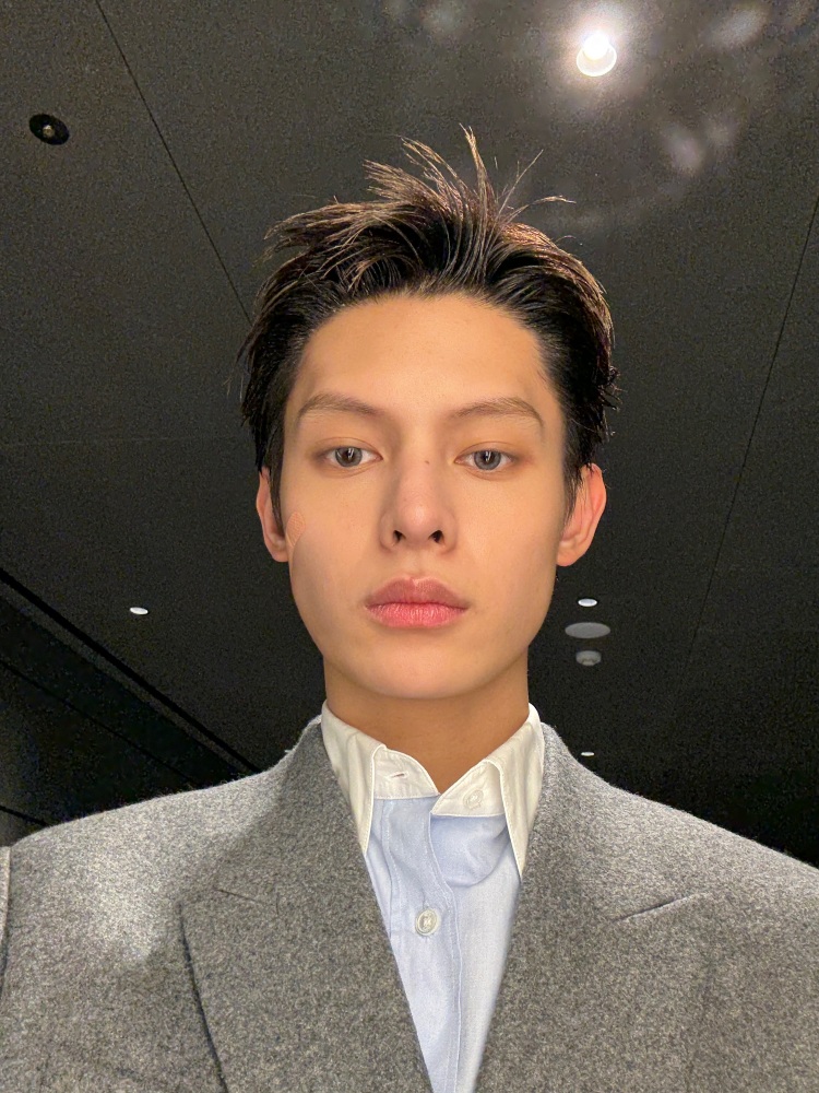 柔軟羊毛面料削弱了傳統西裝的嚴肅感,雙排扣與微收腰線條,內搭白色領片的淡藍襯衫,整體在正式與少年氣息之間取得平衡,也完美放大 James 趙雨凡的清冷氣質。