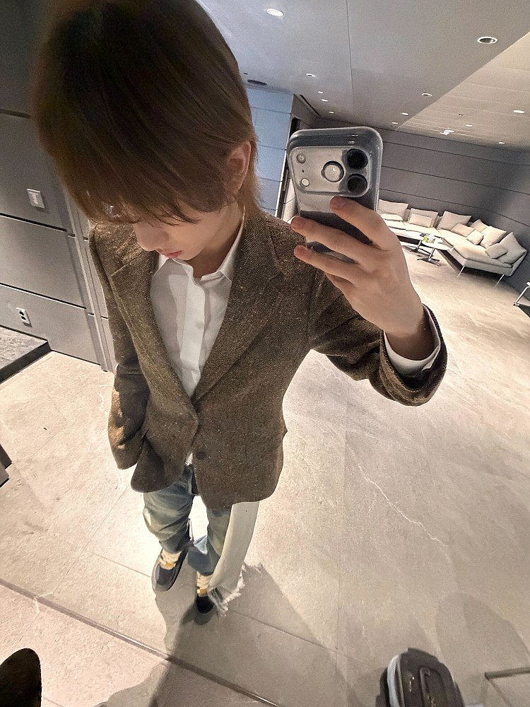 金主訓一定很喜歡這一套造型,更欣喜地在Weverse寫下「我喜歡這雙鞋」,棕色西裝外套配牛仔褲,是本季 Dior 男裝最具代表性的混搭公式。