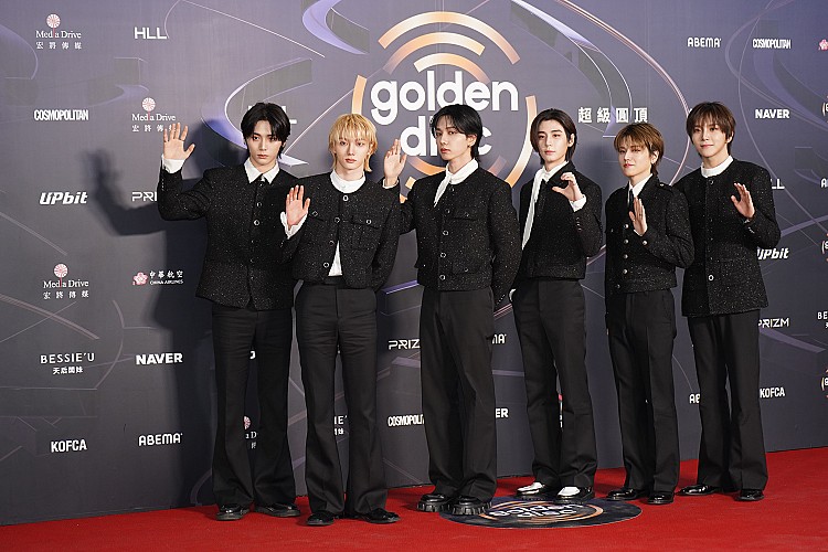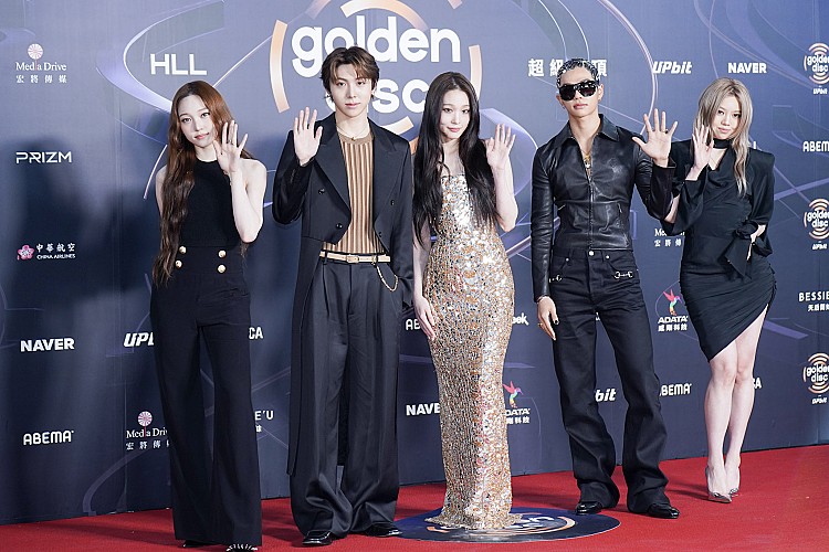 男女混聲組合ALL DAY PROJECT以黑金色調登場,紅毯氛圍感直接拉滿。造型在俐落與華麗之間取得平衡,Annie金色亮片長禮服成為視覺核心,線條貼身卻不張揚,走動間自然反光;其餘成員則以黑色剪裁與不對稱設計呼應,展現冷靜氣場。男生造型則以深色西裝與皮革單品為主,透過內搭材質與配件變化拉出層次,整體風格一致卻各自有型,成功撐起典禮紅毯的高級感。