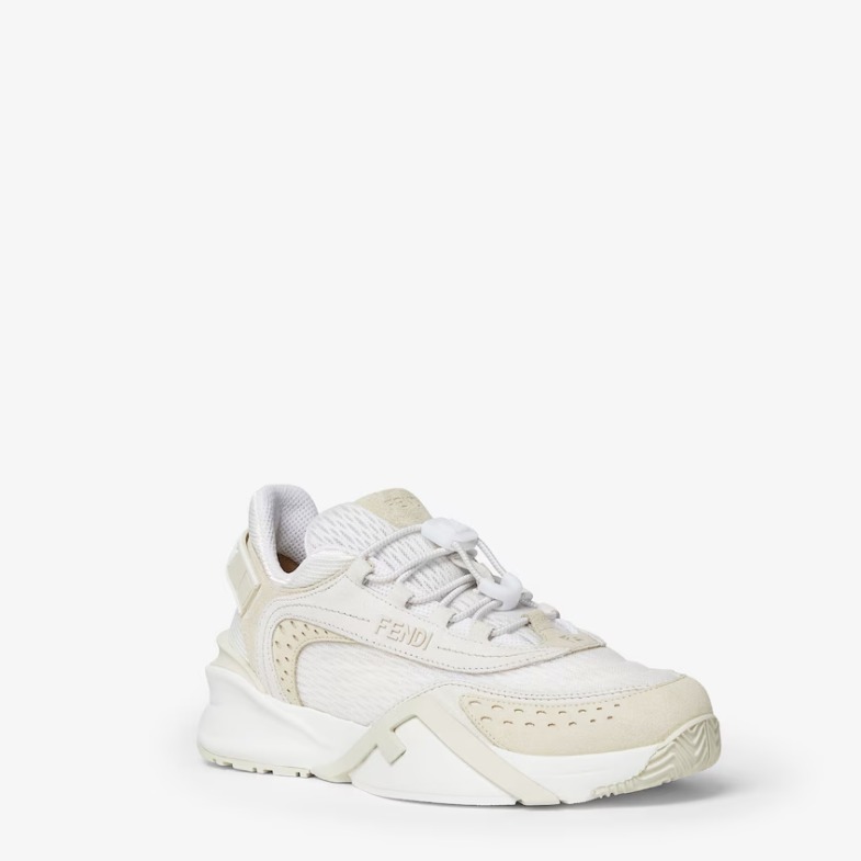 Fendi 這雙球鞋,讓人想起 80-90 年代風靡於街頭的滑板鞋,較寬大的鞋身,加上繁複的材質運用,讓小白鞋變得很有層次。(商品售價:NTD34,500)