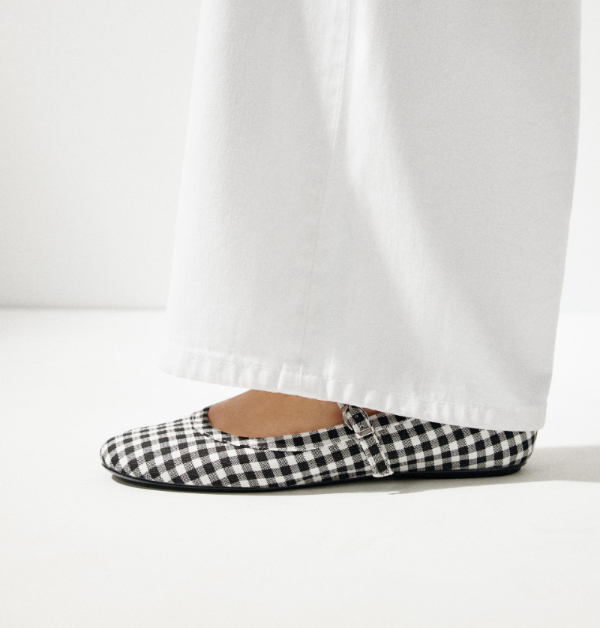 黑白格紋平底瑪莉珍鞋。Source:Zara