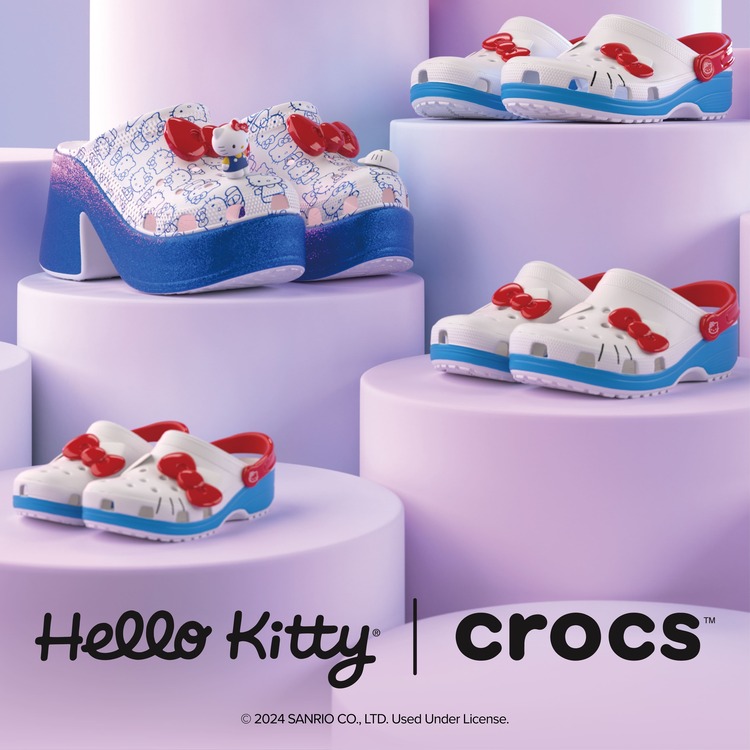 靠著醜萌洞洞鞋大翻身的時尚黑馬 Crocs,跟各大精品聯名不意外,這次竟然也找上 Kitty 啦!這次以霓虹燈閃爍的夜市文化為概念,結合當下最流行的 Y2K 風潮,推出兩款時髦鞋款,以品牌經典 Siren 人魚克駱格鞋型,大膽的厚底高跟設計,鞋面以 Kitty 滿版印花並裝飾著 icon 紅色蝴蝶結,最後再加上 Kitty 本貓,難以忽視的存在感讓你成為人群焦點!不想太高跟也有推出比較低跟、低調的款式,甚至還推出了童鞋呢!新年就用這雙超亮眼 Hello Kitty 洞洞鞋陪你走春吧!