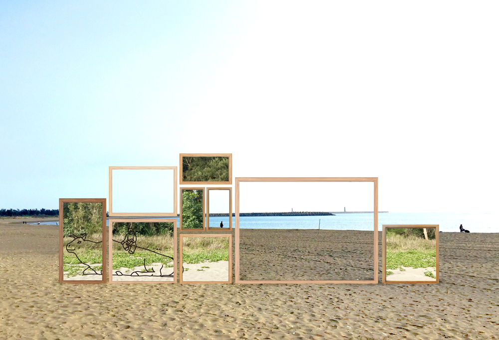 以鐵件、鏡面搭起在沙攤上堆起山形的一座小丘,隨著這些照片,彷彿時光凝滯在漁光島的老舊時光,常常在想我們走過的歲月都是有重量的,無形中讓腳步走的變慢了,或者也讓人更成熟。往事雖已成風,但回憶在心頭堆疊成山。