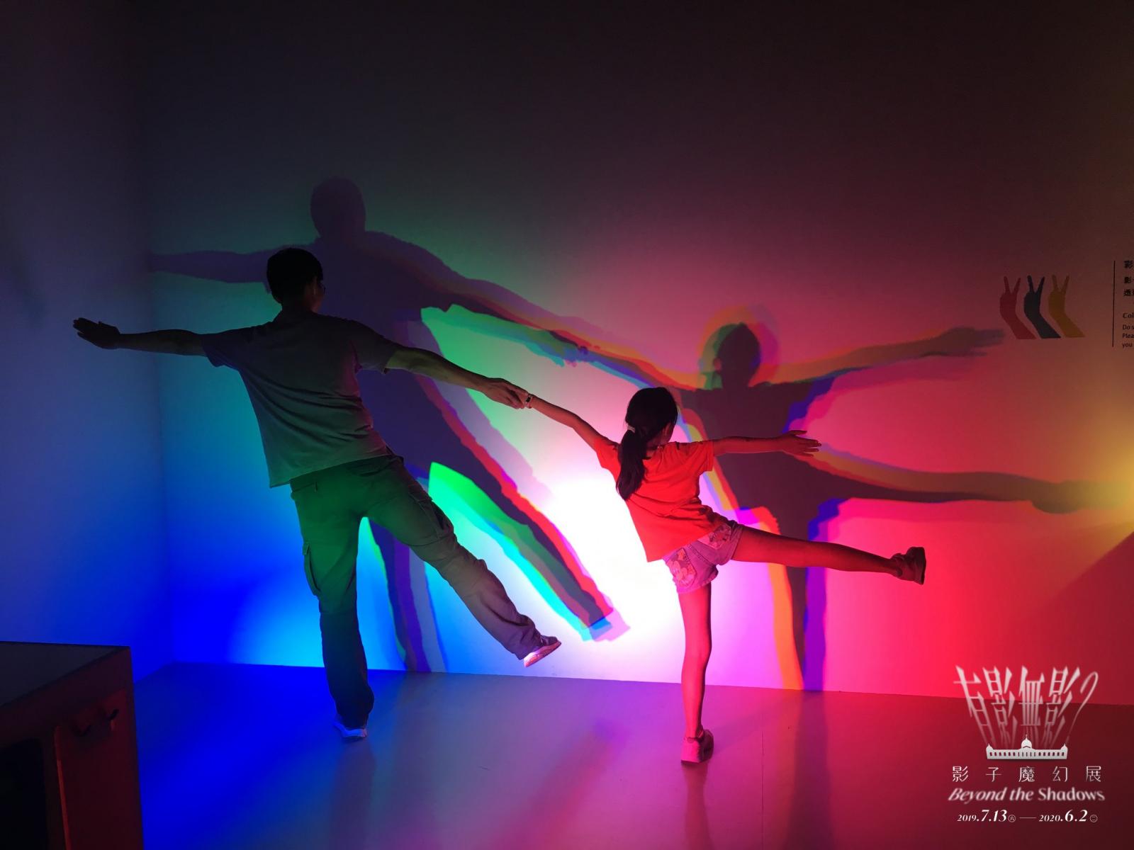 不知道為什麼走進這個區域,身體的影子彷彿變成了主體一樣,讓你一直盯著牆壁上七彩斑斕又多變的影子模樣,這個影子魔幻展「互動體驗區」,如果說前面的《給自己的花》是打卡率最高的冠軍這個互動區說是第二名也不為過啊~這自帶Disco感的色彩真的太令人目眩神迷(跳起來)。