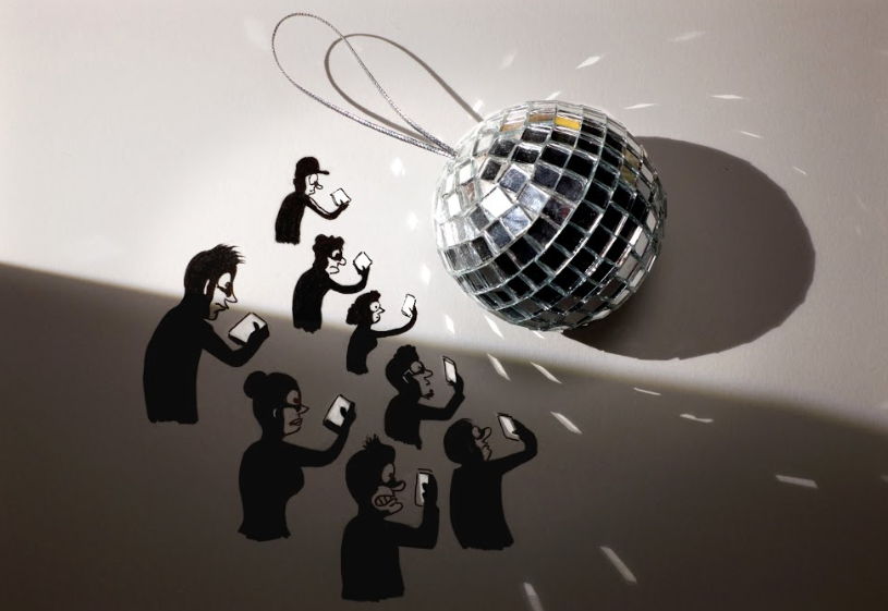 名為「自拍反射」的作品直接打中手機重度使用者的儂編,透過Disco球的光影反射變成一個又一個的手機螢幕,除了揶揄現代人生活離不開手機,也反映了人們目光侷限,只能透過手機認識這個世界,是不是非常的傳神啊。