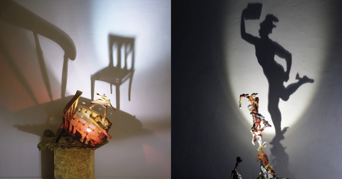 藝術家「迪特・韋吉曼」擅長用廢棄物材打造藝術,其中《雙椅間的對談》(圖左)、《暗喻》(圖右),更是透過奇特光影照射,將廢棄物打造還原「影子」的模樣,讓人大嘆神奇,儂編想問到底是先有影子的草圖雛形,還是先架構好裝置藝術再打燈呢~