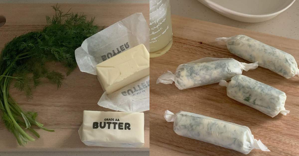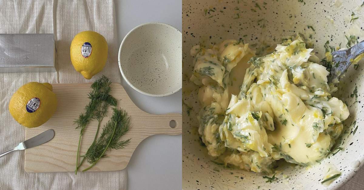 韓國最近紅什麼?不只穿搭風韓系,就連食物也要很「韓國」,近期紅遍韓國大街小巷的「#lemon dill butter」就是「檸檬蒔蘿奶油」,原本是歐洲人搭配麵包使用的奶油,背韓國小姐姐改良之後整個爆紅。不只抹在吐司適合,搭配上牛排更是解膩,吃起來不只有奶油的香氣,更結合了檸檬的水果清香,搭配上黃萊姆味道更濃郁,再搭配上帶有獨特香氣的「蒔蘿」不只增添美觀,味道也同樣很迷人!