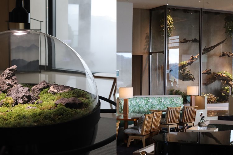 本次大改裝雲品將「永續」作為最大主軸,全新裝潢引進「親生命設計 Biophilic Design」,除了一進大廳你會先看到兩座大型生態缸之外,在每個樓層你也能看到「苔蘚生態球」。位在大廳的「花染木」、「石倚煙」的兩款巨型生態缸,由兩位藝術家胡悠揚、周巧其創作,蒐藏超過3.4萬種來自世界各地的活體植物,最具滂薄的「石倚煙」還搬來一座擁有上萬年以上的珊瑚礁,透過苔蘚導電的概念傳達出細微聲響。大廳另一座「花染木」則是運用秋海棠為主角,將原生、瀕危的19種秋海棠物種移植至此。