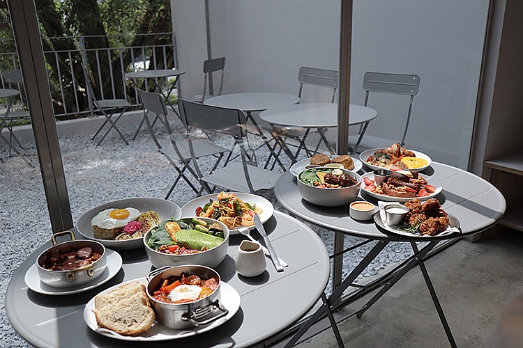 BRUN 不然信義店坐落於信義路與服飾概念品牌PAZZO複合建築中,一樓是純白的服飾旗艦店,緩步上樓便進入靜謐的灰白調用餐天地;二樓是暖光下的早午餐區,留白牆面、極簡座椅與嵌入式插座,兼容日常與精緻;三樓則延伸出一片空中花園,綠意環繞、巨樹蔭覆、光影透過透明屋頂灑下,宛若都市中的祕密花園,既時髦又格調十足。招牌不然班尼迪克蛋,搭配煙燻鮭魚或火腿、荷蘭醬與酥脆可頌,滿足視覺與味蕾;法式炒蛋以小火慢炒、濕潤滑順,配時蔬與法國可頌,平衡濃郁與清爽。